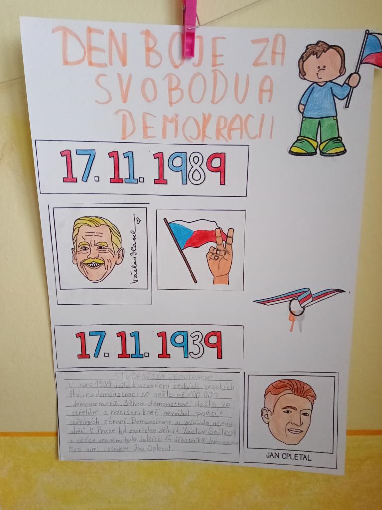 Ve středu 16. listopadu jsme si v hodině výchovy k občanství v 6. třídě připomněli, proč právě 17. listopad je naším státním svátkem.