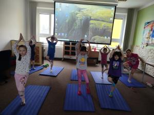 Během kroužku se děti seznamují se základními jógovými pozicemi, dechovými cvičeními, relaxací i hravými pohybovými aktivitami podporujícími soustředění a spolupráci.