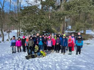 Žáci 1. stupně vyrazili v únoru lyžovat na Fajtův kopec ve Velkém Meziříčí.