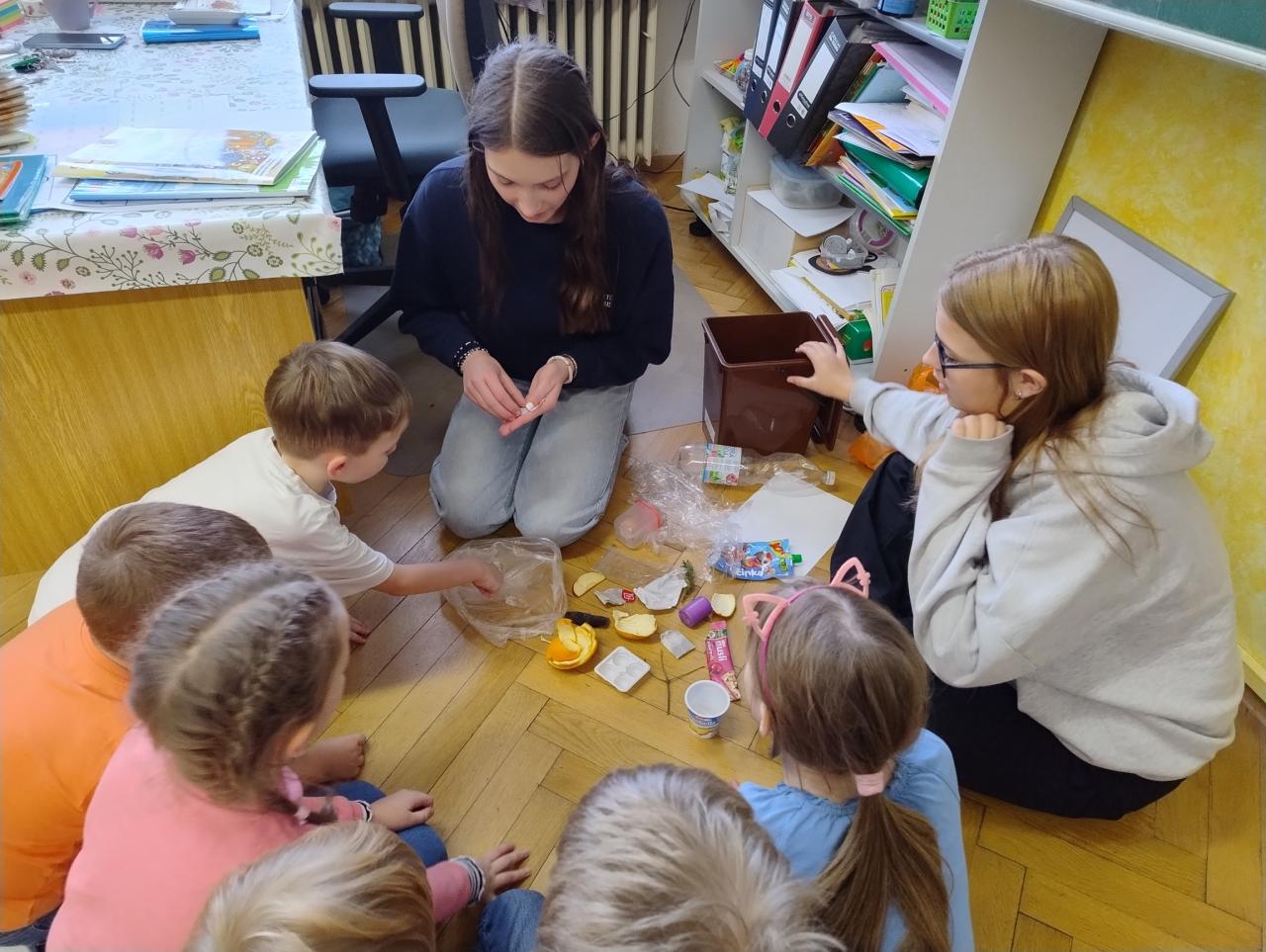 Děvčata z 9. třídy učily prvňáčky třídit odpad 1