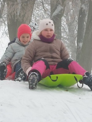 Žáci 3.B se užívali hodinu tělesné výchovy na bobech.