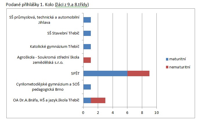 V tomto školním roce se převážná většina žáků hlásí na Střední průmyslovou školu Třebíč.