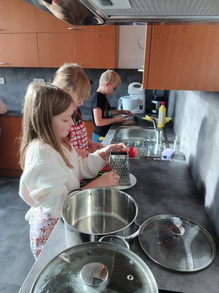 Před svátečním mlsáním jsme si připravili těstovinový salát.