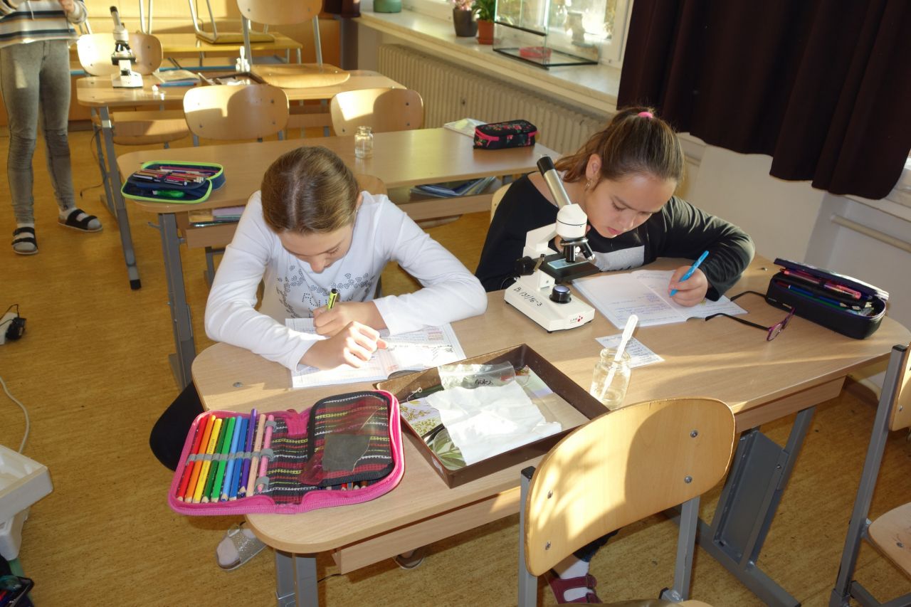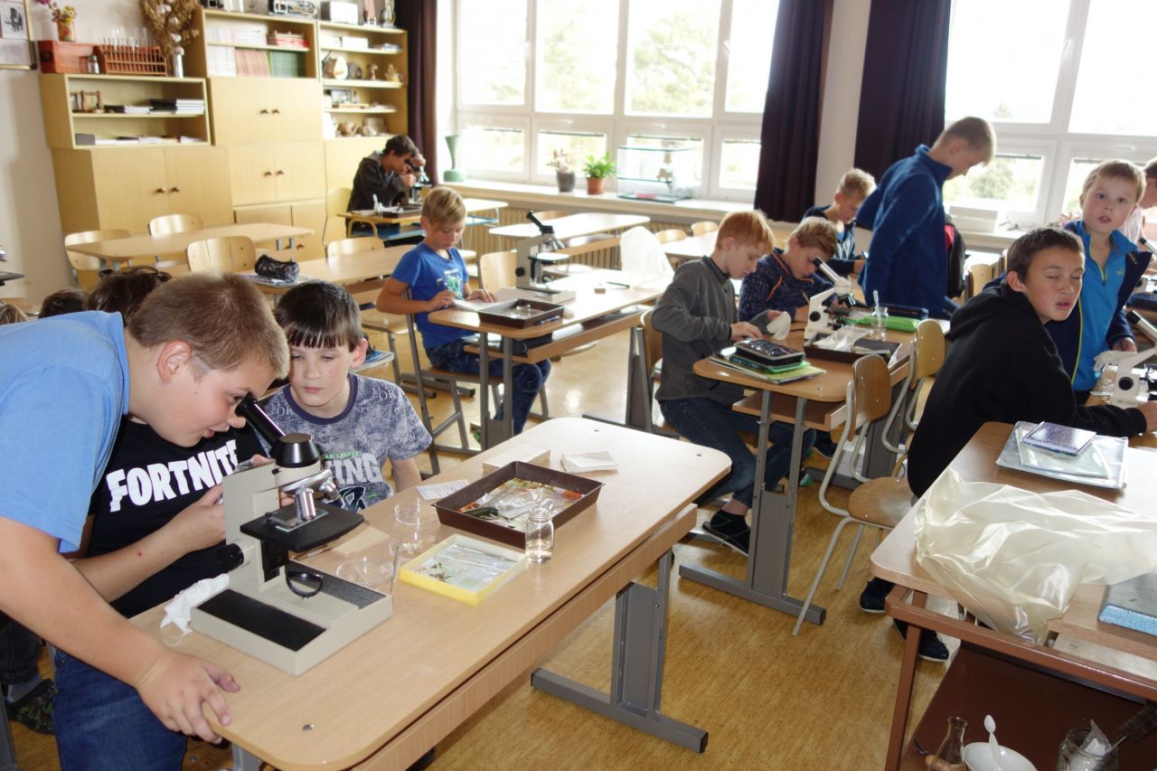 Přírodovědný úkol zněl: mikroskopujte pokožku cibule seté, zakreslete nákres a zapište zápis (dle instrukcí). Zhotovit vodní preparát a pracovat s mikroskopem bylo pro všechny zajímavé a poučné. Prakticky všichni zvládli úkol na výbornou, se zápisy už to bylo horší.