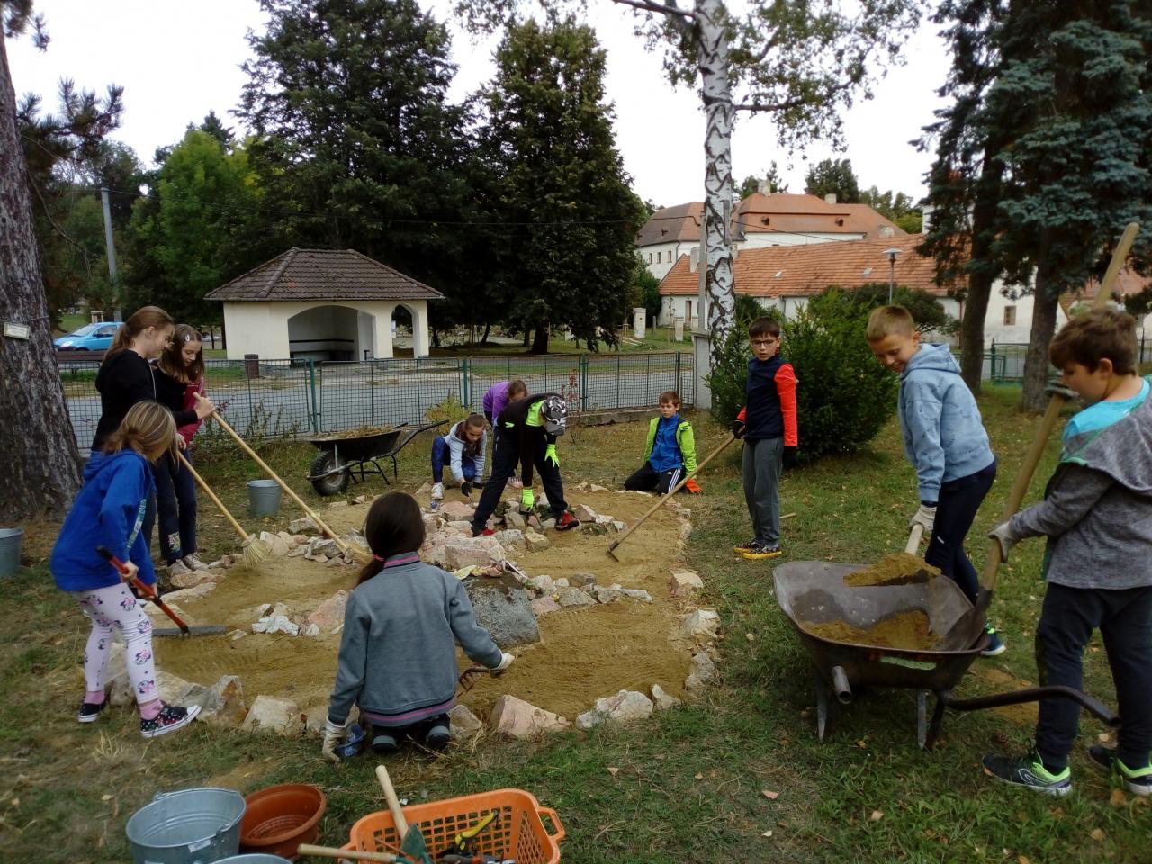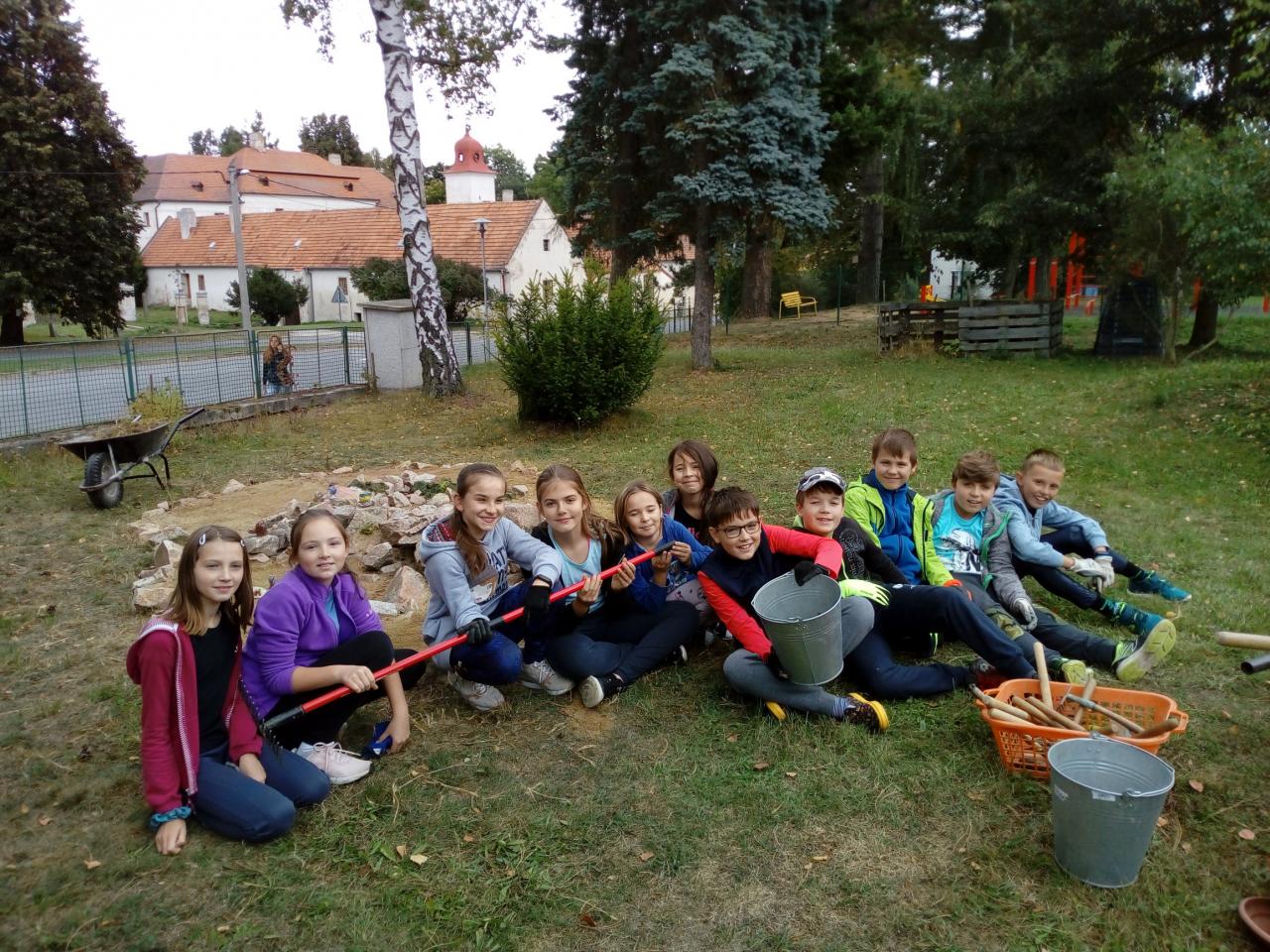 Pátá třída má svoji „ještěrku“, kterou v minulých letech vytvořila jako suché stanoviště pro živočichy na naší školní zahradě.