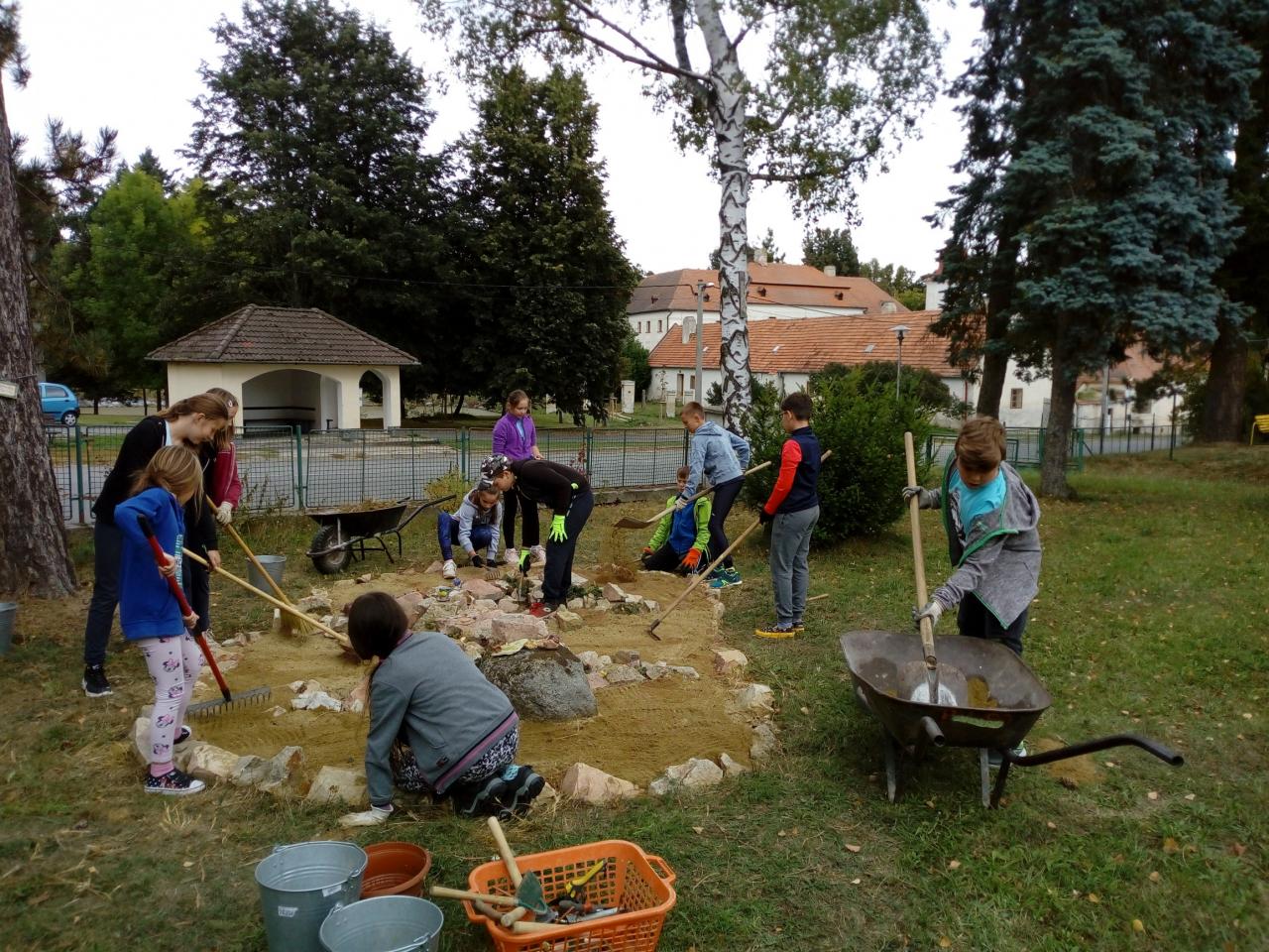 Stačily k tomu jen kameny, písek, geotextilie a šikovné ruce žáků a učitelů, kteří stanoviště osázeli sukulenty a jarními cibulovinami. Ještěrka se stala také domovem živých ještěrek, které zde můžeme za slunných dnů pozorovat. O ještěrku se páťáci pravidelně starají a v říjnu ji vypleli a vyčistili.